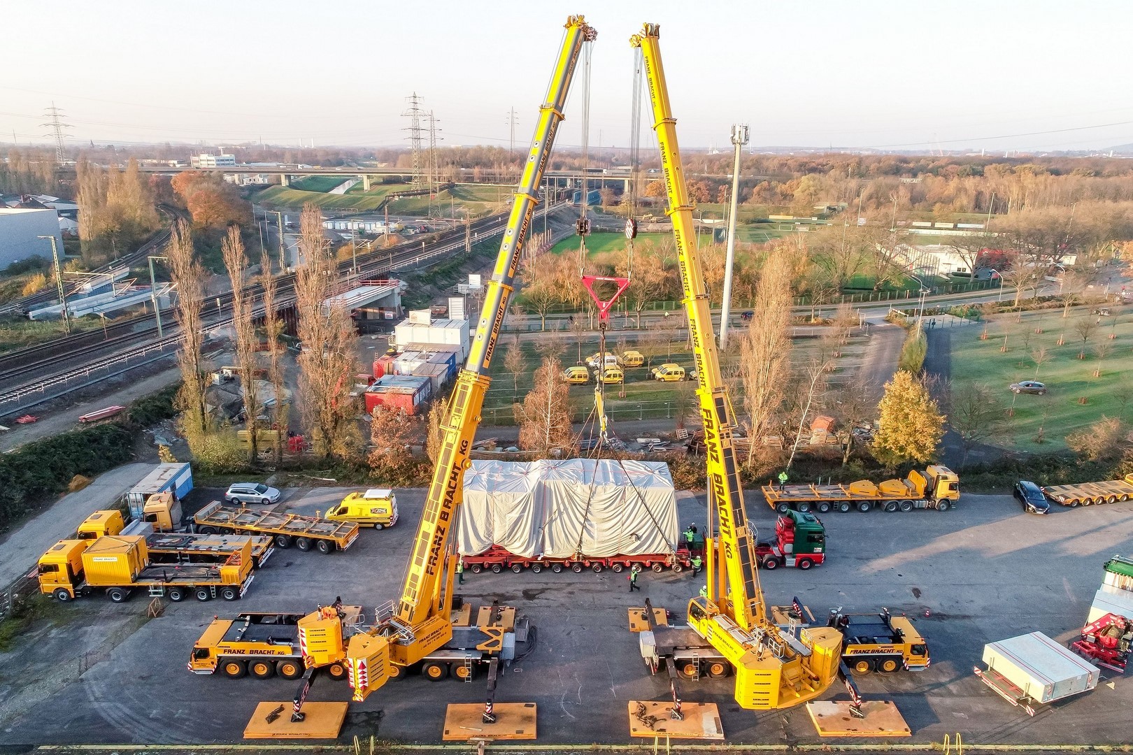 200 Tonnen an den Haken der beiden LTM 1450-8.1 von Bracht aus Duisburg und Recklinghausen