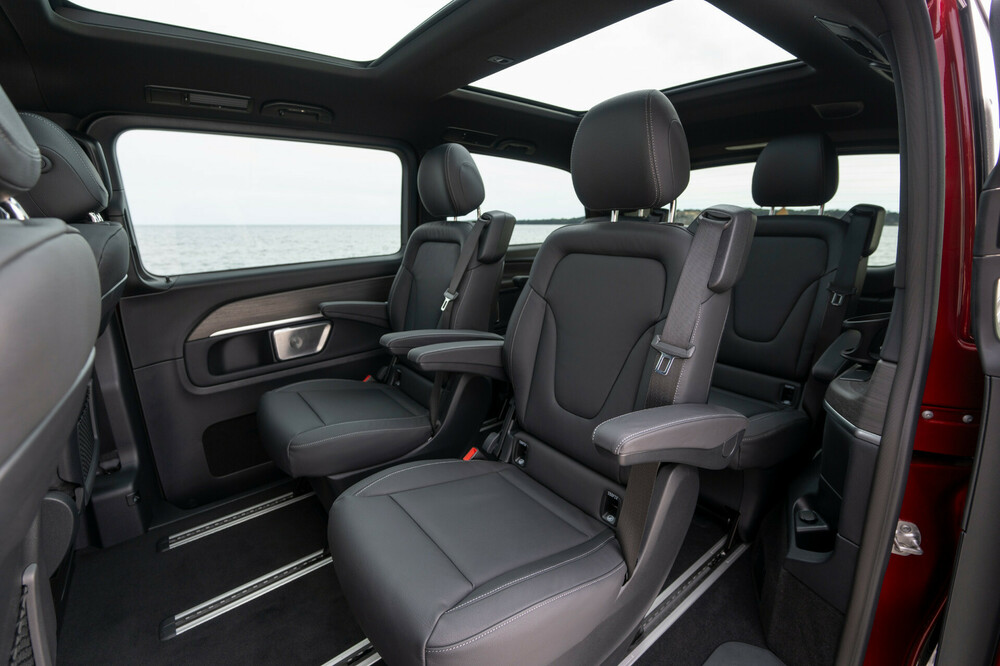 Die Serienausstattung von EQV und V-Klasse ist umfangreich: ATTENTION ASSIST, Fahrlicht-Assistent inklusive Regensensor, Aktiver Abstands-Assistent DISTRONIC, Aktiver Brems-Assistent mit Kreuzungsfunktion, Totwinkel-Assistent, Aktiver Spurhalte-Assistent, Intelligenter Geschwindigkeits-Assistent und Park-Paket.