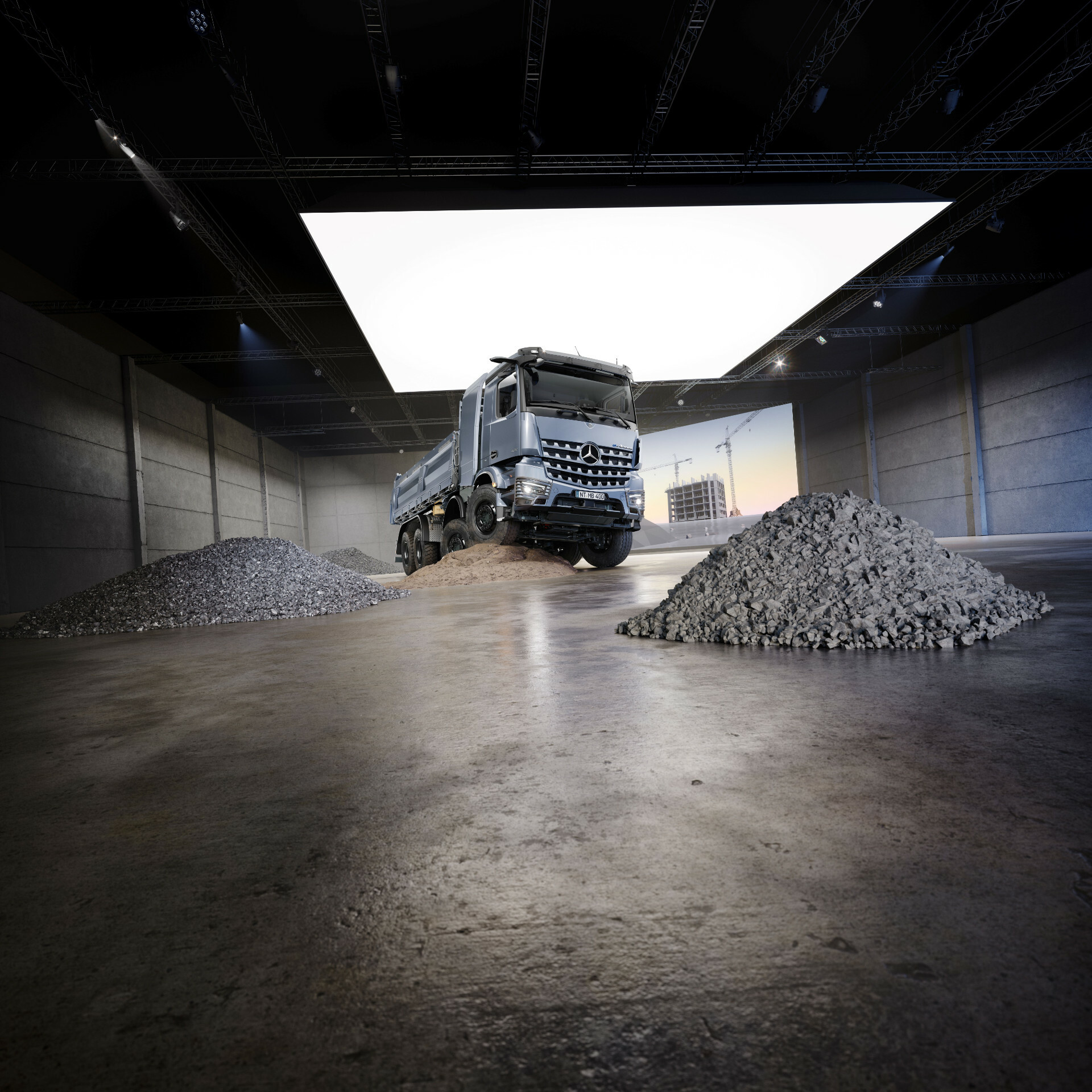 Leinfelden-Echterdingen | München - Belastbar, leistungsstark und effizient auch unter anspruchsvollen Einsatzbedingungen, im Gelände wie auf der Straße: Mit diesen Eigenschaften gehört der Arocs von Mercedes-Benz Trucks seit Jahren zu den gewichtigsten Playern im Bauverkehr. Jetzt kommt ein weiteres Attribut dazu, denn mit dem neuen eArocs 400 steht nun die erste batterieelektrische Variante des bewährten Arbeitstiers aus dem Hause Mercedes-Benz Trucks zur Verfügung.