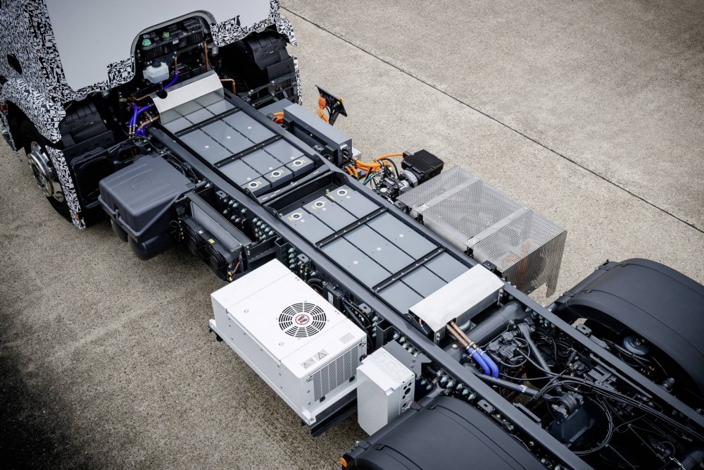 ie technische Ausgangsposition des Mercedes-Benz Urban eTruck bildet ein schwerer dreiachsiger Verteiler-Lkw von Mercedes-Benz. Darüber hinaus haben die Entwickler von Daimler Trucks das Antriebskonzept völlig neu erdacht: An die Stelle des konventionellen Antriebsstrangs tritt eine elektrisch angetriebene Hinterachse mit Elektromotoren unmittelbar neben den Radnaben. Die neue Achse wurde abgeleitet aus der E-Achse des Mercedes-Benz Citaro Hybrid Busses. Die Energieversorgung soll ein Batteriepaket aus drei Modulen von Lithium-Ionen-Batterien sichern. Daraus resultiert laut Hersteller eine Reichweite von bis zu 200 km. Dies wäre ausreichend für eine typische Tagestour im Verteilerverkehr. Dank des integrierten Konzepts der Antriebsachse mit radnabennahen Motoren sollen die Batterien ihren Platz crashsicher innerhalb des Rahmens finden.