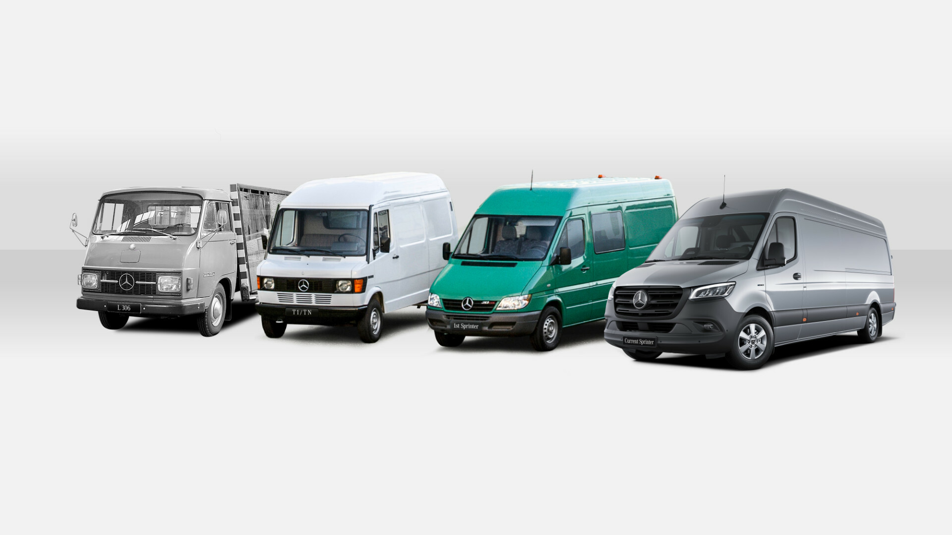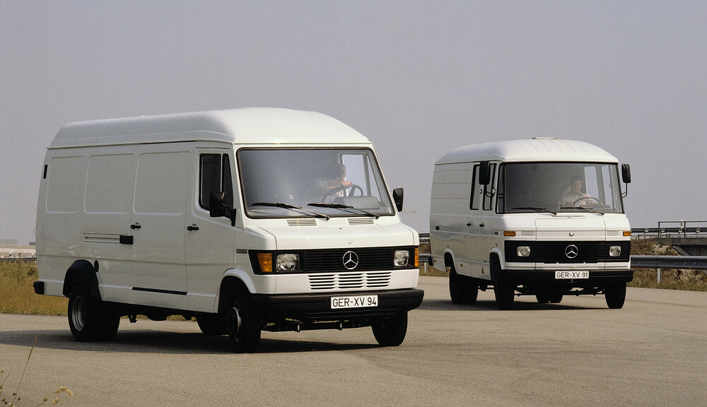 Der Sprinter folgte auf den Mercedes-Benz T1/TN, eine wahre Legende, die 18 Jahre lang in knapp einer Million Exemplaren gefertigt wurde. Der Neue übernahm nur dessen technisches Grundkonzept, alles andere wurde revolutioniert. Die Kombination aus selbsttragender Karosserie und traktionsstarkem Hinterradantrieb, aus modernem Fahrwerk mit Einzelradaufhängung vorn, einer vorbildlichen Sicherheitsausstattung sowie kraftvollen Motoren war einzigartig. Von Anfang an positionierte sich der neue Transporter als echtes Multitalent. Dank seiner Vielzahl an Varianten und Möglichkeiten profilierte er sich als erste Wahl über alle Branchen hinweg.