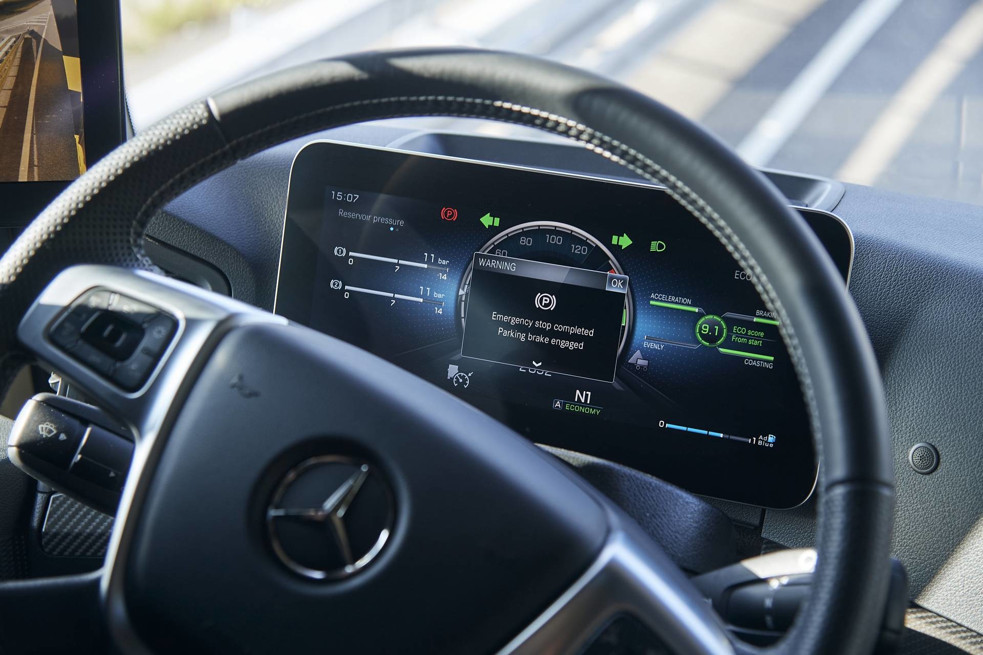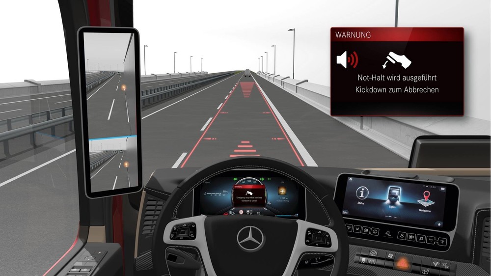 Für alle Assistenzsysteme von Mercedes-Benz Trucks gilt: Stets sind sie so ausgelegt, dass sie den Fahrer innerhalb der Systemgrenzen so gut wie möglich unterstützen, er aber – wie es auch das Gesetz vorschreibt – zu jeder Zeit die Hoheit über sein Fahrzeug hat und ebenso in der letzten Verantwortung für seinen Lkw steht.