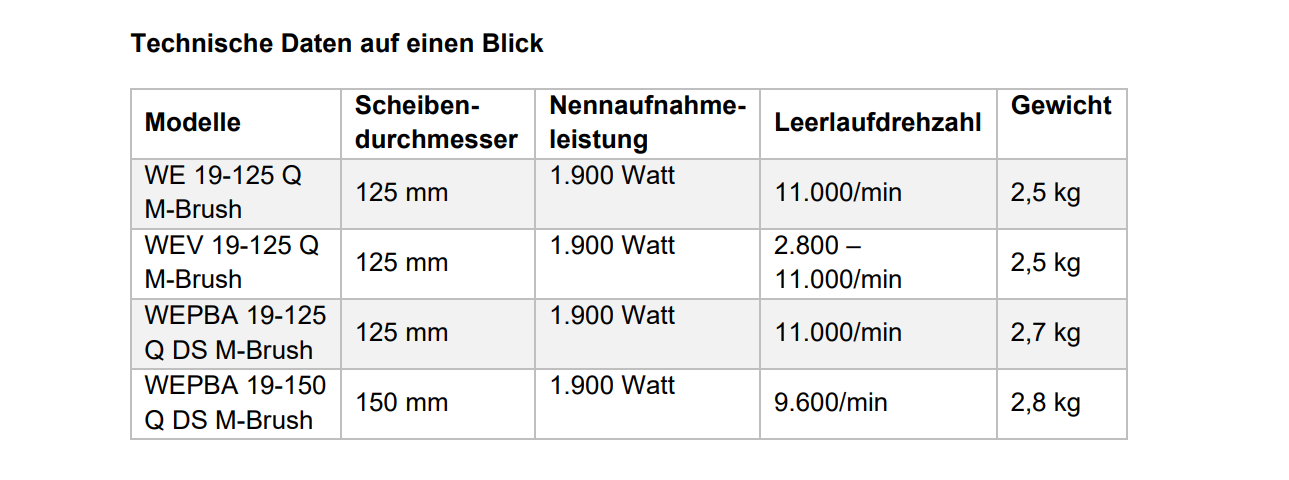 „Die neuen Netz-Winkelschleifer sind für den industriellen Dauereinsatz ausgelegt. Daher haben wir auch den Lieferumfang optimiert“, erklärt Lutz. „Im Standardlieferumfang ist ein Staubschutzfilter enthalten – er verhindert, dass sich grobe Metallspäne im Gerät absetzen und verlängert so die Lebensdauer der Maschinen. Das ist insbesondere für Arbeiten mit aggressiven Schleifmitteln – wie etwa keramischen Fiber- oder Trennscheiben – sehr hilfreich.“ Außerdem bieten die neuen Winkelschleifer höchsten Anwenderschutz. „Wir haben die WEBPA-Modelle nun serienmäßig mit einer robusten Metallöse ausgestattet. Daran können Anwender unseren passenden Werkzeugsicherungsgurt befestigen und so Mensch und Maschine beim Arbeiten in großer Höhe absichern.“ Je nach Modell verfügen die neuen Schleifer außerdem über weitere Sicherheitsfunktionen wie Sanftanlauf, Wiederanlauf- und Überlastschutz, Sicherheitskupplung, Scheibenbremse, Totmannschalter und Autobalancer. Bei allen Modellen aus der neuen Range geht der Scheibenwechsel zudem dank MQuick werkzeuglos und schnell von der Hand. „Unterm Strich sind die neuen Netz-Winkelschleifer die erste Wahl, wenn es um höchsten Anwenderschutz und maximale Lebensdauer im harten, industriellen Einsatz geht“, resümiert Lutz.![]()