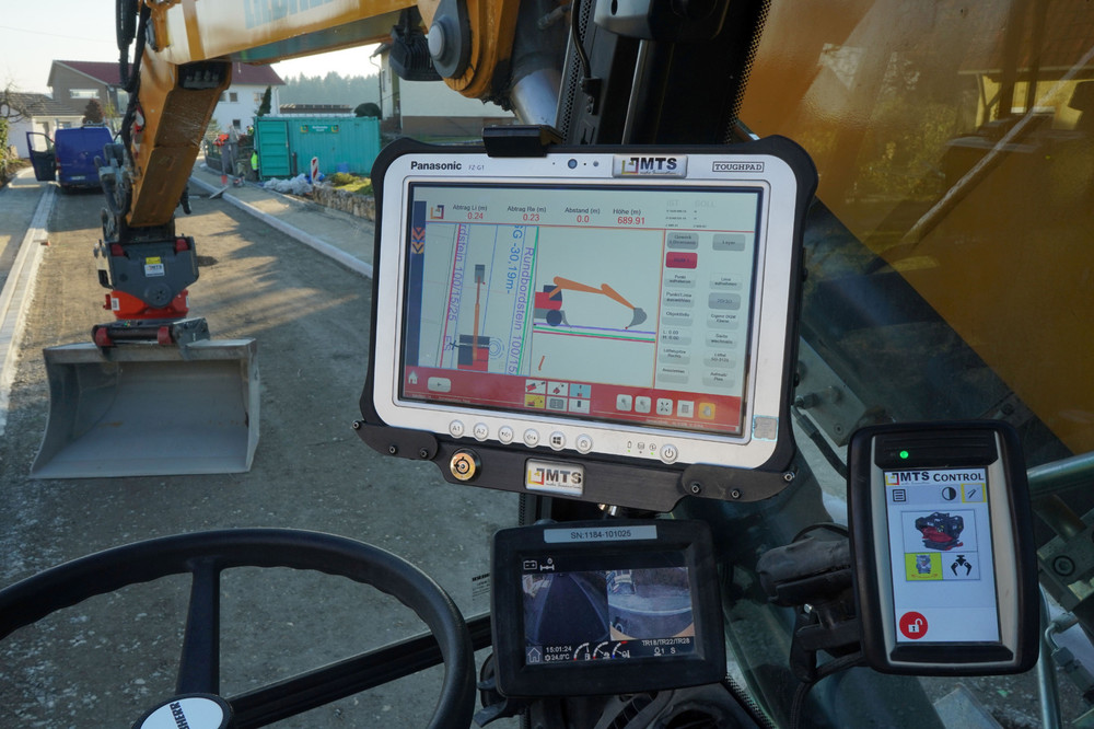 Die Kür der vielen weiteren Vorteile einer BIM-gestützten Bauausführung sieht er in der flächendeckenden Verdichtungskontrolle: „Denn wo wir bisher nur punktuell und mit manuellem Aufwand Messungen mit einem Fallgewicht vornehmen konnten, können wir neuerdings über das Zusammenspiel von MTS-NAVI und MTS-Anbauverdichter die Verdichtung sozusagen nebenbei flächendeckend prüfen und protokollieren und die Ergebnisse im direkten Anschluss in die gemeinsame Datenablage zurückspielen.“