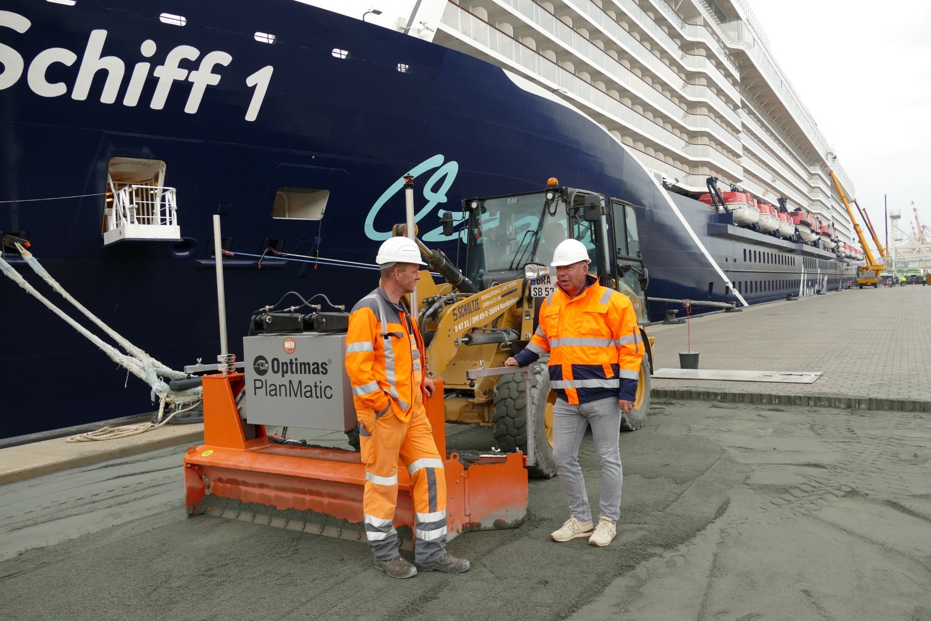 Bremerhaven - „Der Untergrund des Kreuzfahrtterminals muss für die Schiffsbe- und entladung absolut präzise angelegt sein. Dabei ist uns das Optimas PlanMatic mit der neuen 3-D-Steuerung ein unentbehrliches Hilfsmittel“, sagt Peter Schultze, Geschäftsführer der Schultze Rohrleitungs- und Tiefbau GmbH aus Nordenham.