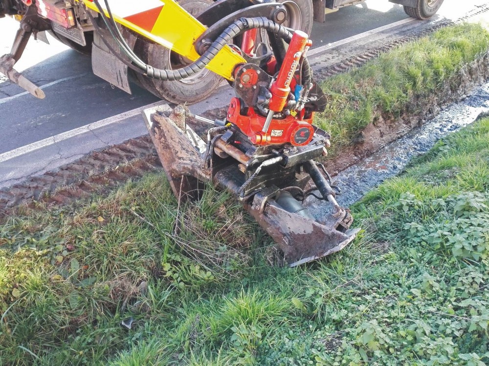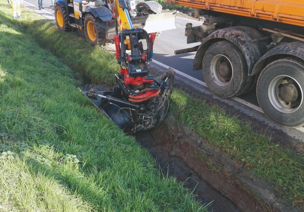 Auch Forstbetriebe, Straßenmeistereien und Bauhöfe schätzen die einfache, präzise und effiziente Durchführung von Grabenarbeiten mit dem Spezialwerkzeug. Denn die Reinigung und Erhaltung von Gräben zur Ableitung des Oberflächenwassers spielt nicht nur entlang von Straßen eine wichtige Rolle. Auch an Schotter- und Waldwegen ist ihre Pflege zum Schutz vor Erosion und Frostschäden durch nicht oder unkontrolliert ablaufendes Wasser relevant. Boden, Laub, Gehölz oder auch Unrat lassen sich zusammentragen oder abfahren; anders als bei der Säuberung mit einer auch aus Sicht des Naturschutzes nicht unbedenklichen Fräse, wo das Material in der Umgebung landet.