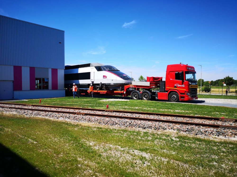 Zweibrücken, Oktober 2019 - Eigentlich sind die TGVs (Train à Grande Vitesse) für ihre hohen Geschwindigkeiten bekannt. Bei diesem Job hatte die Präzision jedoch eindeutig Vorrang vor Schnelligkeit. Denn beim Umsetzen einer 34 Tonnen schweren TGV Lokomotive auf ein Gleis im Technicentre SNCF Romilly Sur Seine kam es auf Zentimeter an. Deshalb setzte der Krandienstleister Mordefroy Levage bei den Tandemhüben mit dem Demag AC 100-4L und dem AC 140 auf ein bewährtes Duo aus seinem Fuhrpark.