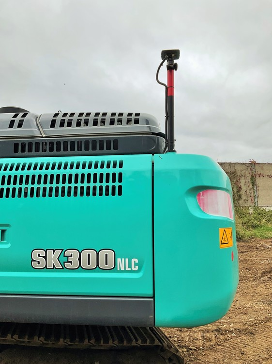 Der GPS-Mast der Topcon-Maschinensteuerung befindet sich am Heck des Baggers.