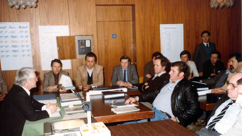 VDBUM-Veranstaltung im Jahr 1977: Der junge Zuhörer, der links neben dem Referenten Platz genommen hat, ist der heutige VDBUM Ehrenvorstand Udo Kiesewalter.