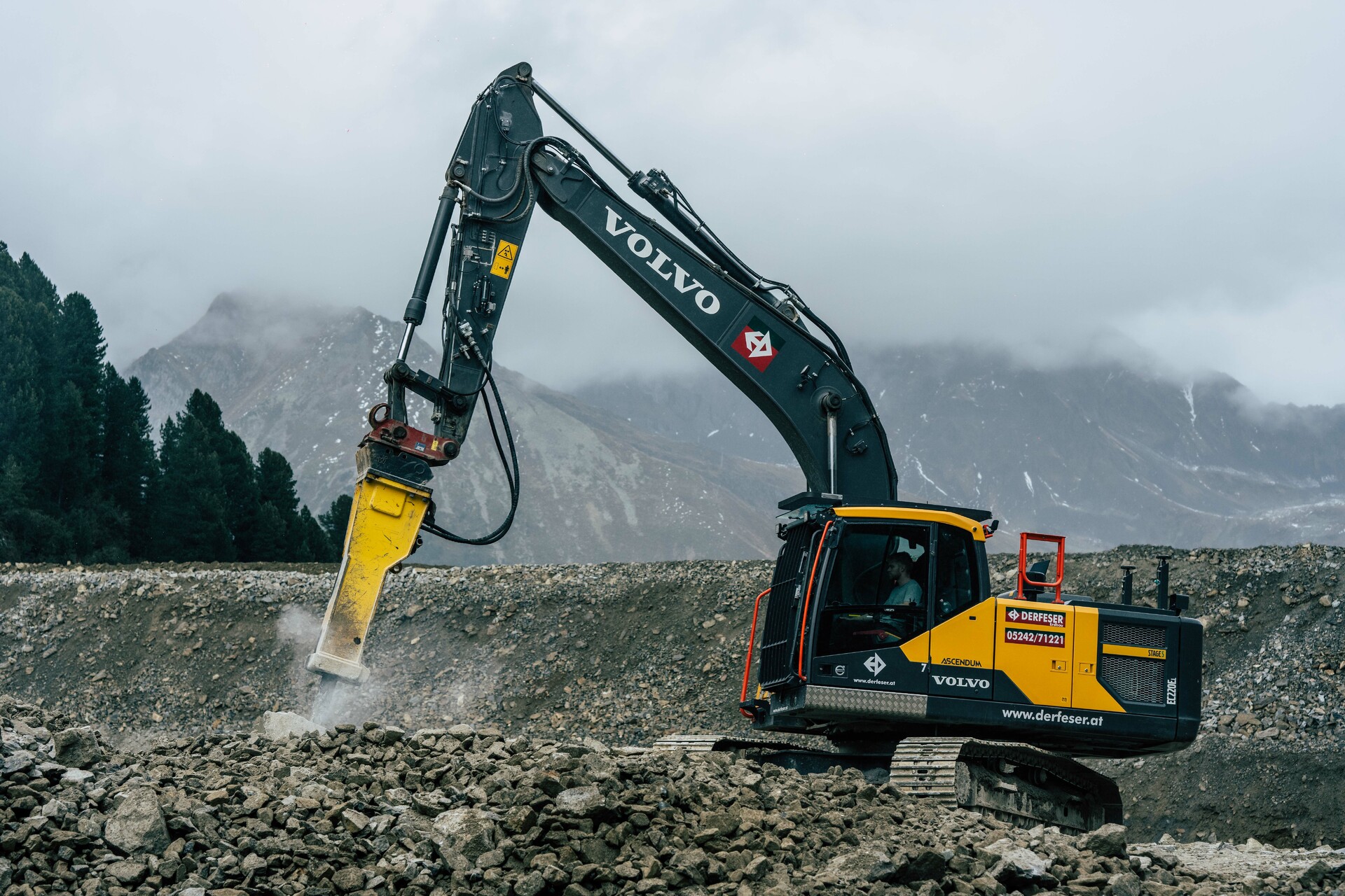 Damit spannt er den Bogen zu den rund 200 Baumaschinen, die beim Projekt im Einsatz sind, und von denen mehr als 60 von Volvo CE stammen. Flaggschiff der -Baggerflotte ist ein nagelneuer EC950F. Der 90-Tonner ist momentan der erste seiner Art in Österreich, bekommt aber bald Verstärkung: Ein zweites Exemplar hat die Arbeitsgemeinschaft bereits geordert. „Wir haben Ladespiele simuliert und daraus ergab sich ein Bedarf zwischen 90 bis 100 Tonnen“, erklärt Wetzlinger. „In dieser Größenklasse ist der Markt groß – aber eigentlich für uns auch eingeschränkt, weil wir mit Partnern arbeiten wollen, auf die wir vertrauen können. Und wir wissen nun mal, dass uns mit Ascendum ein guter Partner in gewohnter Qualität zur Verfügung steht.“ Die bisherigen Erfahrungswerte sprechen eindeutig dafür, dass sich das Vertrauen auszahlt: „50 bis 55 Liter pro Betriebsstunde im vollen Betriebsmodus auf einer Seehöhe von 2.250 Meter! Wir haben beim Start nicht daran geglaubt und dachten, die Maschine verbraucht mehr. Aber die Prognosen von Ascendum haben sich bewahrheitet.“