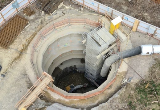Gerade mal zehn Meter breit ist der 18 Meter tiefe Schacht, in dem Rene Tröger rangieren muss, noch weiter verengt durch den provisorischen Treppenaufgang und die Frischluftröhre. Aber das ist kein Problem für den erfahrenen Maschinisten und den Volvo ECR145EL. „Der Kettenbagger ist äußerst bedienungsfreundlich und sehr leichtfühlig. Er bewegt sich genauso, wie man es will“, erklärt Rene Tröger zufrieden und ergänzt: „Der kurze Arm macht den Volvo ECR 145 EL wirklich besonders, man kann so nah am Bagger arbeiten. Und aufgrund des kurzen Hecks gibt es keinen großen Schwenkradius. Es ist einfach schön mit der Maschine zu arbeiten, die Kraft ist immer da.“