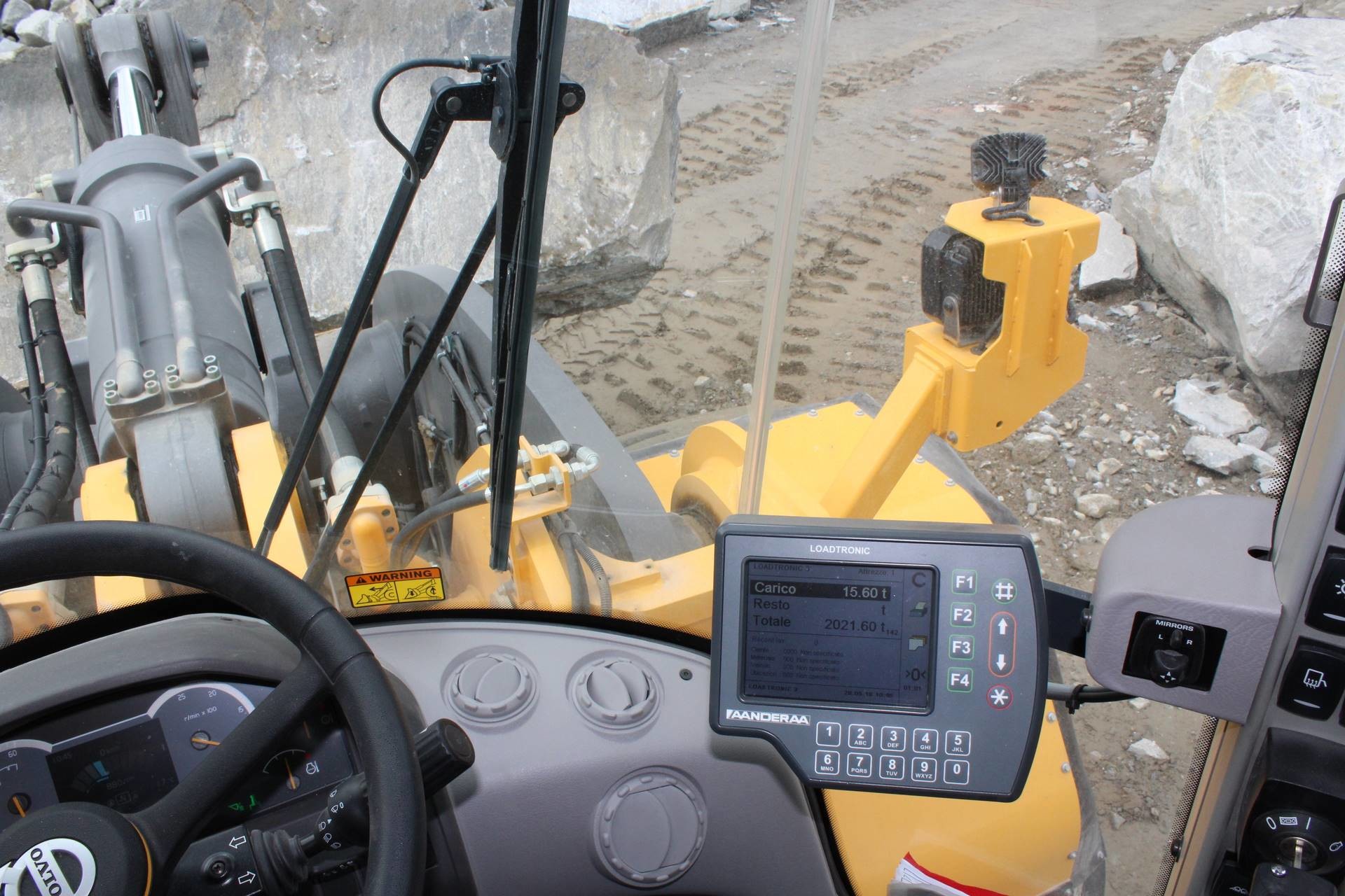 Das Wiegesystem Loadtronic 3 verhindert Überladung und liefert Produktionsdaten des abtransportierten Materials aus dem Steinbruch. Anhand von Grösse und Gewicht werden die Blöcke der jeweiligen Werkstatt zugeordnet.