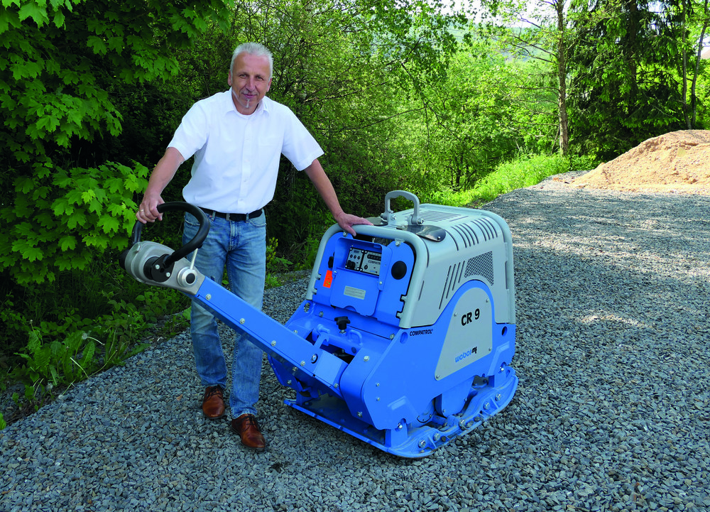 „Die Einsatzgebiete größerer handgeführter Bodenverdichter sind vielfältig. Meist dort, wo Aufsitzwalzen zu groß und zu unhandlich sind, oder eine hohe Wendigkeit gefragt ist, setzt man Rüttelplatten wie die CR 9 Hd E ein. Dabei kann es die Verdichtungsleistung in der Regel mit Walzen aufnehmen“, erklärt Verkaufsleiter Andreas Klein.