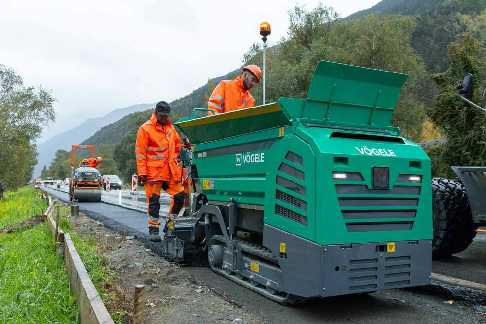 Windhagen - Im Schweizer Kanton Wallis hat sich der Mini-Class-Vertreter beim Einbau eines Straßenbanketts bewährt: Der Bereich seitlich der Kantonstraße T9 sollte erneuert und verbreitert werden. Mit dem Kleinstfertiger von Vögele konnte das Einbauteam die Maßnahme trotz Engstellen unterbrechungsfrei und hochwertig umsetzen.