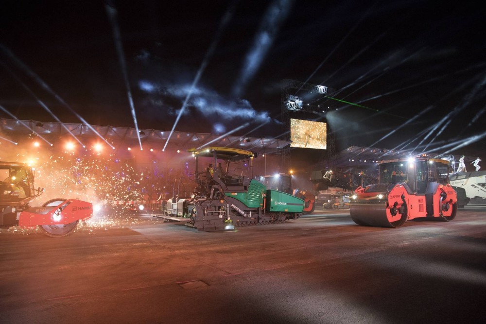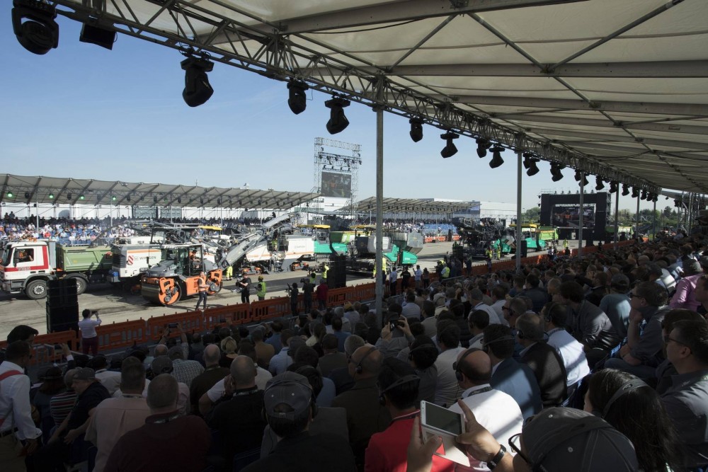 Rund 4.000 Kunden und Straßenbau-Experten aus mehr als 100 Ländern kamen zu den Road Technology Days von WIRTGEN, VÖGELE und HAMM am 19. und 20. April. Auf dem 370.000 Quadratmeter großen Werksgelände der JOSEPH VÖGELE AG in Ludwigshafen am Rhein boten die drei Unternehmen aus dem WIRTGEN GROUP Geschäftsfeld Road Technologies praxisnahe Einblicke in aktuelle Entwicklungen aus den Sparten Kaltfräsen, Kaltrecycling, Bodenstabilisierung, Einbauen und Verdichten. Außer Fachvorträgen ausgewählter Experten und Technologie-Ausstellungen konnten die Besucher unter anderem Live-Demonstrationen, Werksführungen und eine Maschinen-Ausstellung mit rund 70 Exponaten erleben. Festlicher Höhepunkt war ein Galaabend in der neu gebauten 22.200 Quadratmeter großen Versandhalle des VÖGELE Stammwerks. „Der persönliche und fachliche Austausch mit unseren internationalen Kunden ist uns sehr wichtig“, sagt Domenic G. Ruccolo, CEO der WIRTGEN GROUP. „Nur so können wir in einer Branche mit so vielfältigen, hoch diversifizierten Anforderungen passgenaue länder- und kundenspezifische Lösungen entwickeln. Die Road Technology Days sind deshalb eine ideale Wissens- und Austausch-Plattform.“ Seit 2005 findet die Veranstaltung abwechselnd in den Stammwerken des Kaltfräsen-Spezialisten WIRTGEN, des Straßenfertiger-Herstellers VÖGELE und des Walzen-Herstellers HAMM statt.