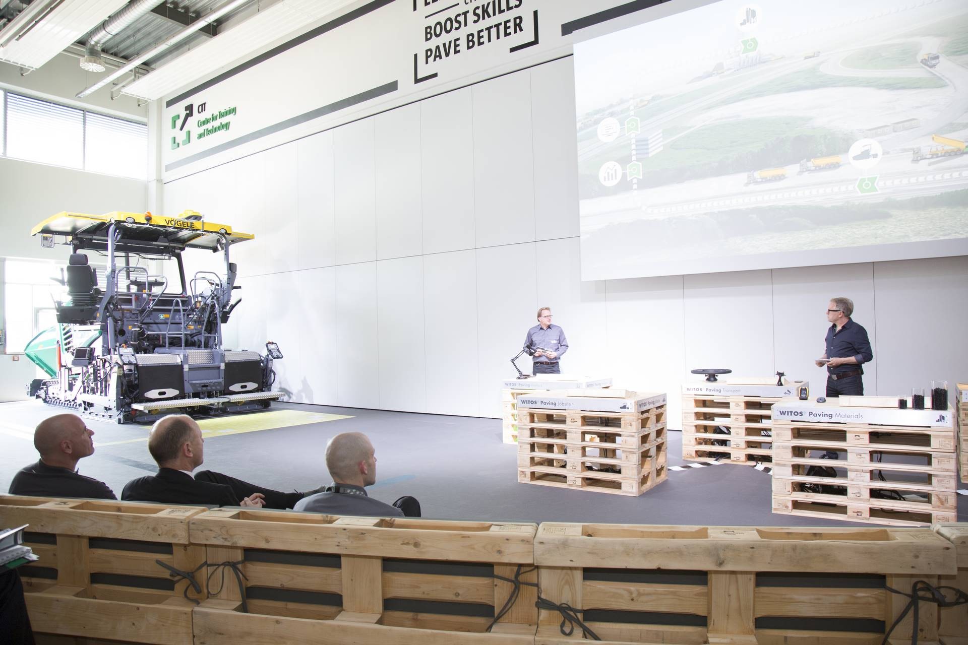 Bei Fachvorträgen ausgewählter Experten und Technologie-Ausstellungen erhielten die Besucher zudem einen Ausblick auf aktuelle und künftige Entwicklungen im Straßenbau. WIRTGEN zeigte präzise Nivellier-, wirtschaftliche Schneid- und moderne Recyclingtechnologien. VÖGELE präsentierte das softwarebasierte Prozessmanagement-System WITOS Paving. Die Telematik-Lösung vernetzt unter anderem Straßenfertiger, Mischanlage und LKW und ermöglicht so eine exakt koordinierte Mischgutzufuhr. Alle beteiligten Akteure können auf sämtliche Daten wie Betriebsinformationen der Maschinen oder Be- und Entladezeitpunkte der LKW in Echtzeit zugreifen und die Abläufe so genau aufeinander abstimmen. HAMM zeigte intelligente Lösungen für die Verdichtung: unter anderem das intuitive Bedienkonzept Easy Drive und das Prinzip der Oszillation. Dabei werden tangentiale statt vertikale Schubkräfte in das zu verdichtende Material geleitet. Die Bandage bleibt in ständigem Bodenkontakt und ermöglicht so eine besonders schnelle Verdichtung.