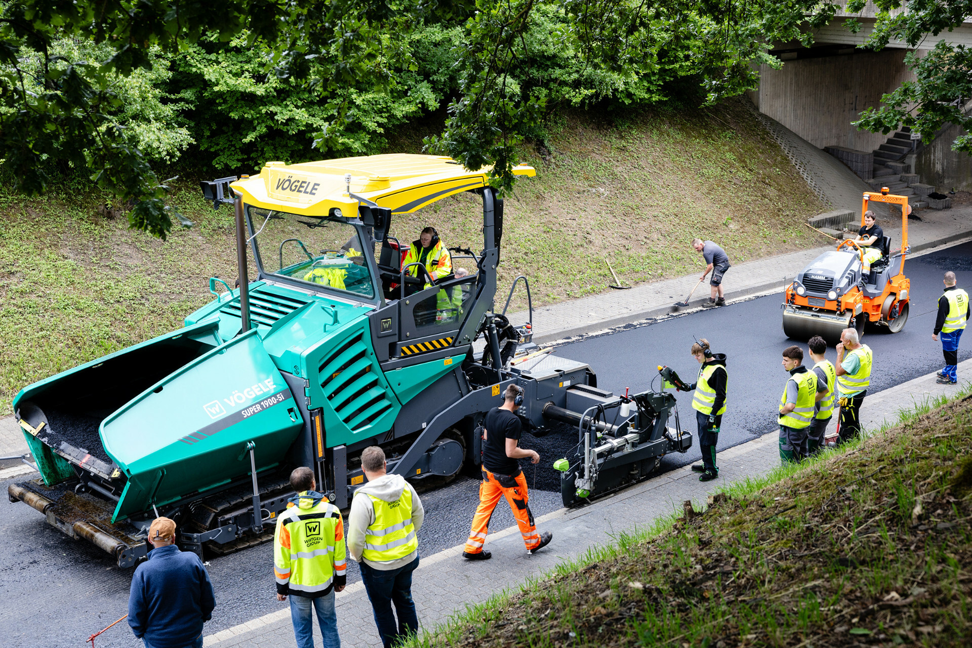 Mithilfe des Fertigers SUPER 1900-5i bauten die Auszubildenden am zweiten Tag Trag- und Deckschicht ein.