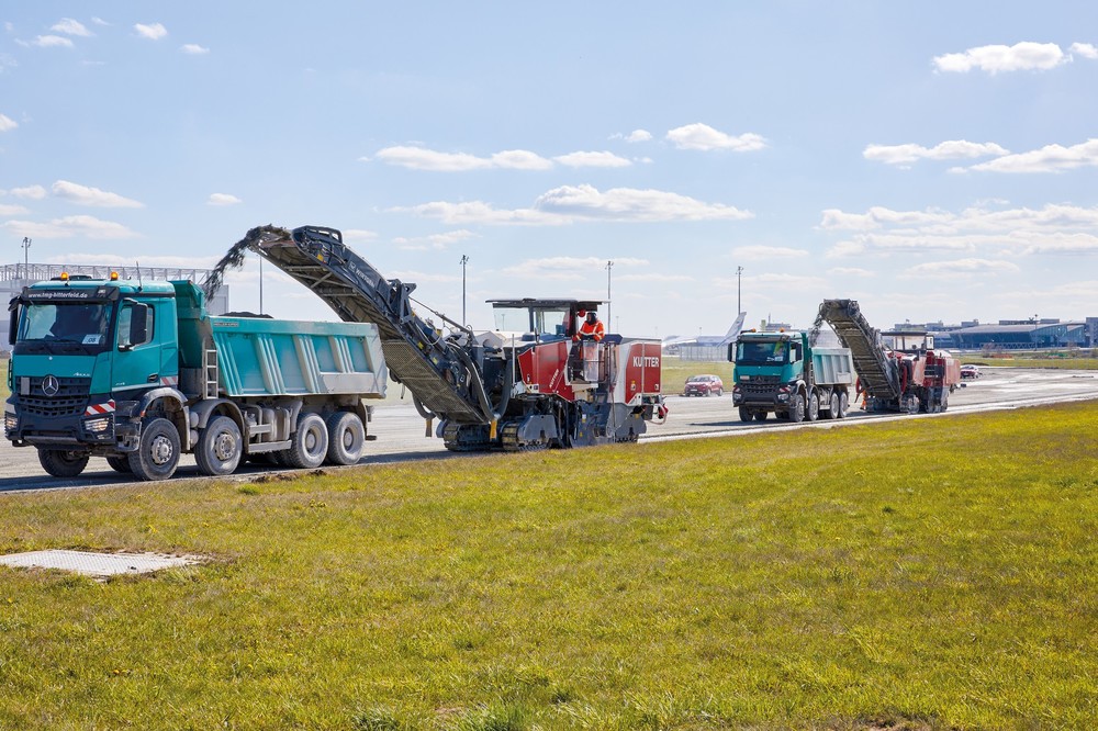 Auf dem Flughafen Leipzig/ Halle wurden mit insgesamt 15 Wirtgen Kaltfräsen 350.000 t harter Beton ausgebaut.