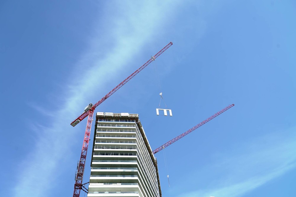 Linz – Juli 2020 - Nicht nur in Nordamerika und Asien begegnet man der ständig wachsenden Nachfrage nach urbanem Wohnraum bei gleichzeitig mangelndem Platz mit Hochbauten. Auch in Linz hat man die Zeichen der Zeit erkannt. Bis 2025 sollen in der Donaustadt sechs neue Wolkenkratzer in den Himmel wachsen. Einer davon ist der Bruckner Tower, in dessen 31 geplanten Stockwerken 356 neue Wohnungen sowie eine Schule und ein Kindergarten entstehen werden. Drei WOLFF-Krane der Clear-Reihe errichten das 98 Meter hohe Gebäude im Auftrag des österreichischen Bauunternehmens HABAU Hoch- und Tiefbaugesellschaft m.b.H.