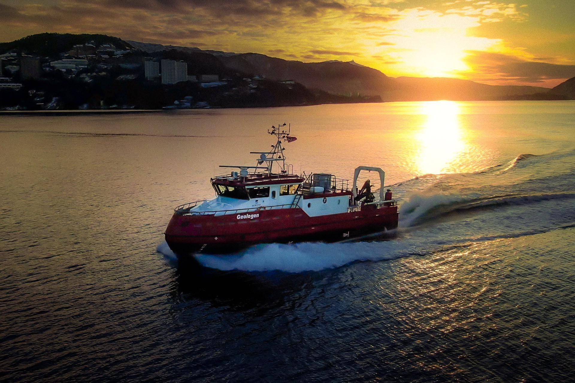 Norwegen - Das einzigartige Hybridsystem kombiniert Yanmar-Motoren mit Elektrik und einem steuerbaren Verstellpropeller. Das Forschungsschiff e-Work 2390 Survey wurde in Betrieb genommen und untersucht den Meeresboden und die Fjorde rund um Norwegen. Es wurde im März im Rahmen einer Zeremonie in Trondheim an den Geologischen Dienst Norwegens (NGU) übergeben, bei der die Direktorin der NGU, May Britt Myhr, es mit Meerwasser übergoss und auf den Namen Geologen taufte.