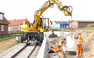 Wangerooge, 11.05.2022 - 1897 wurde die Inselbahn auf der Nordseeinsel Wangerooge eingeweiht. Heute ist die insgesamt 5,9 km lange Strecke die wichtigeste Verkehrsverbindung auf der Insel. Damals wie heute ist es eine Schmalspurbahn mit 1.000 mm Spurbreite. Für die beiden Bahnhöfe im Westen und der Ortsmitte werden neue Bahnsteige angelegt. Hier ist der ATLAS 1404 ZW Bagger im Einsatz. Bauforum24 Artikel (01.04.2022): ATLAS mit Wohlfühlkabine Der ATLAS 1404 ZW Zweiwegebagger ist mit elektronischer Schwenk-, Hubhöhen- und Lastmomentbegrenzung ausgerüstet. Der ATLAS Zweiwegebagger 1404 ZW für 1.000 mm Spurbreite ausgerüstet – niedriger Schwerpunkt und quer eingebauter Motor machen standfest – Neubau der Bahnsteige auf zwei Wangerooger Bahnhöfen Für ihn wurde ein den Anforderungen entsprechendes Fahrgestell gebaut und montiert. Der 1404 ZW ist mit 20 t Dienstgewicht der kleinste ATLAS Zweiwegebagger. Er ist mit einem Deutz-Motor der EU-Stufe V/US-EPA mit 95 KW/130 PS ausgerüstet. Abgasnachbehandlungsanlage mit geschlossenem Diesel-Partikelfilter und kombiniertem SCR-Katalysator sorgen für Umweltfreundlichkeit. Die Linde Load-Sensing-Hydraulik in Verbindung mit dem ATLAS AWE 4 Hydraulikmanagement machen sensibles und millimetergenaues Arbeiten und Fahren möglich. Standfester Kurzheckbagger Das Kontergewicht ist integriert und beim ATLAS 1404 ZW in drei Heckradius-Varianten lieferbar 1.575 mm – 1.700 mm – 1.998 mm. Auf Wangerooge ist die 1.998 mm Variante im Einsatz. Ein niedriger Schwerpunkt und ein quer eingebauter Motor sorgen für optimale Stabilität und Standsicherheit beim Arbeiten auf dem Gleis. Auch beim Heben von wirklich schweren Gewichten bleibt der 1404 ZW trotz Schmalspur sicher und solide. Das Fahrwerk mit robusten, speziell konzipierten Baggerachsen mit Planetengetriebe in allen 4 Radnaben sowie Allradantrieb, Regelfahrmotor mit Lastschaltgetriebe und ein doppelt wirkendes Fahrbremsventil machen sichereres Fahren auf Straße und Schiene möglich. Ein Alleinstellungsmerkmal für ATLAS ist die Starrachse mit einem zuschaltbarem, 100%igem Sperrdifferential. Dieser 1404 ZW wird mit AWE 4 Technik über Reibräder angetrieben. Für diesen Einsatz auf Wangerooge wurden Achsen mit auf 1.000 mm reduzierter Breite montiert. EMS Gleisbau über 40 Jahre Erfahrung 1974 wurde EMS Gleisbau GmbH in Hamburg gegründet und ist 1999 nach Seevetal (bei Hamburg) umgezogen. Heute bearbeiten rund 60 Mitarbeiter mit einem hoch modernen Maschinenpark – wenn es anliegt Tag und Nacht - Standardaufgaben rund ums Gleis ebenso wie knifflige Spezialaufträgen. Das Leistungsspektrum umfasst Gleis- und Bahnsteigbau, Kabelverlegung und Stopfarbeiten. Zahlreiche patentierte Eigenentwicklungen – etwa für den gleisgebundenen Bahnsteigkanten und auch Kabelkanalbau oder beim Einpflügen von Kabeln direkt vom Gleis aus – beschreiben das kompetente Niveau von EMS. Zum umfangreichen Maschinenpark gehören auch acht ATLAS Zweiwegebagger. Sie helfen, das hohe Niveau der Firma zu realisieren. Der 20 t Zweiwegebagger ATLAS 1404 ZW arbeitet auf Wangerooge standfest mit einem 1.000 mm Schmalspur Fahrwerk. Sicherheit auch im Detail – variabel nutzbar Der ATLAS 1404 ZW verfügt über eine computergestützte Schwenkbegrenzung, die bei Erreichen des Endpunktes die Oberwagengeschwindigkeit erst verringert und dann abschaltet. Das lässt Schäden an Signalanlagen usw. gar nicht erst zu. Elektronische Hub-Höhenbegrenzung schließt das Risiko aus, dass der Baggerarm die über ihm befindlichen Fahrdrähte berührt. Das ist auf Wangerooge nicht relevant, aber schon beim nächsten Einsatz auf dem Festland wieder wichtig. Das System erkennt, wenn ein Anbaugerät montiert ist und passt die programmierte Arbeitshöhe entsprechend an. Auch die Lastmomentbegrenzung gemäß DIN EN 15746-2 ist integriert. Das bedeutet, dass der Bagger bei allen Hubarbeiten zuverlässig abschaltet, bevor der Bagger ins Kippen kommt. Die neu entwickelte Schnellwechslersteuerung hat für die Werkzeugsteuerung 16 Speicherplätze für motorische und zylindrische Verbräuche. Fahrer entlasten – kundenorientierte Zusammenarbeit Die Kabine bietet dem Fahrer allerbeste Sicht. Der Rück- und Seitenraum wird mit Kamera und Monitor überwacht. Der Actimo Evolution Supersitz von Grammer ermöglicht so viele individuelle Einstellungsnuancen, dass man mit seiner Unterstützung den Rücken wirklich entlastet. Betreut wird EMS und seine ATLAS-Maschinen von dem Händler ATLAS Hamburg, der zur von der Wehl Gruppe gehört. Für diese Fachleute ist Beratung vor Ort oder technische Hilfe selbstverständlich. Vor allem aber geschieht alles sehr schnell und kundennah. Besonders interessant ist, dass ATLAS spezielle Kundenwünsche wie eben Spurverkleinerung, Kamerasysteme, spezielle Ausleger, spezielle Kabinen u. v. m. als Sonderausführungen anbieten kann. Dies geschieht auch in Zusammenarbeit mit dem ATLAS-Werk in Ganderkesee, so wie für diesen Zweiwege-Schmalspurbagger 1404 ZW. Weitere Informationen: Atlas GmbH | © Fotos: Atlas