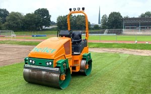Boppard, 11.02.2021 - Heiler setzt auf eine Sondermaschine von Bomag zum optimalen Andrücken der 200 cm breiten Grassoden. Bei der Verlegung von Rollrasen im Sportpark Illoshöhe kam die Maschine das erste Mal erfolgreich zum Einsatz. Die städtischen Sportflächen werden als Trainingsplätze vom Lizenzbereich des VfL Osnabrück genutzt. Bauforum24 Artikel (09.03.2020): BOMAG gewinnt iF DESIGN AWARD 2020 Neuer Rasen auf den Trainingsplätzen des VfL Osnabrück: Eine Sonderanfertigung der Bomag Tandemwalze BW 120 AD-5 wurde eingesetzt, um neu verlegten Rollrasen optimal anzudrücken: Um eine statische Linienlast von < 10 kg/cm zu erreichen, wurde die Bandage von 1200 mm auf 1350 mm vergrößert und die Mantelstärke von 13 mm auf 10 mm reduziert. Statt 11,3 kg/cm erreicht die gewichtsreduzierte Tandemwalze (2,5 t statt 2,7 t) nun die erforderlich statische Linienlast < 10 kg/cm. Hier geht's zum vollständigen Beitrag