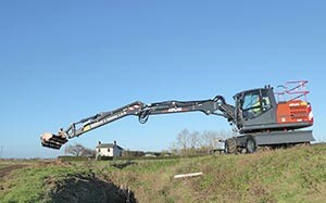 Ganderkesee - ATLAS Bagger 140W mit superbreiten Reifen schont den Boden - standsicher auch bei großen Lasten - wirtschaftlich durch geringen Verbrauch und Vielfalt bei Einsätzen – Rundumsicht wie auf einem Leuchtturm. Bauforum24 Artikel (03.05.2023): ATLAS Mobilbagger 175 WSR Die extrem breiten Reifen geben dem ATLAS Bigfoot sicheren Stand und dem Untergrund wenig Druck. Für den Untergrund ist er ein "Bruder Leichtfuß", für die Standfestigkeit ein Fels. Das beschreibt den Big Foot, den ATLAS Mobilbagger 140W mit 16 t Dienstgewicht und 20 km/h Fahrgeschwindigkeit (optional bis 36 km/h) recht genau. Die extrem breiten und großen Reifen 710/45-26,5 20 PR geben diesem Mobilbagger die Geländegängigkeit eines Kettenbaggers. Die breiten Reifen erzeugen einen deutlich geringeren Bodendruck, weshalb der Big Foot zum Beispiel für Mäharbeiten perfekt eingesetzt werden kann, wie hier im Gebiet des Wasser- und Bodenverbandes „Schweriner See/Obere Sude“. Über 500 km Gräben, die vor langer Zeit zur Entwässerung des Gebiets angelegt wurden, müssen gepflegt und gemäht werden. Hierfür ist der Big Foot mit einem 4 m großen Mähkorb ausgerüstet. Zügig bewegt er sich an den Gräben entlang und schneidet den Bewuchs aus. Nach einer Weile sieht man am Boden kaum noch Spuren vom Mobilbagger. "Mit dem Big Foot können wir auf eigener Achse von Einsatzort zu Einsatzort fahren, ohne einen Transporter zu benötigen. Das spart Zeit und Kosten", berichtet Mark Sierks, Geschäftsführer des Verbandes, von einem weiteren wichtigen Vorteil. Große Bodenfreiheit - spezieller Unterwagen Damit der ATLAS Big Foot sich bestens bewegen kann, wurde ein spezieller Unterwagen konstruiert, der die Arbeitsbewegungen nicht einschränkt. Der Big Foot hat eine enorme Bodenfreiheit und einen sehr geringen Bodendruck, ohne jedoch (falls notwendig) die Transporthöhe von 4 m zu überschreiten. Um den Untergrund so schonend als möglich zu befahren, sind die Achsen mit 35% Sperrdifferential ausgerüstet. Das verhindert das Durchdrehen der Räder stattet und das Steckenbleiben des Mobilbaggers in schlammigem oder moorigem Untergrund. Verbunden wird dies mit enormer Kraft. Bei 11 m Ausladung (mit optionalem zweitem Knickarm) kann er unabgestützt noch 1,3 t heben. Die Kraft hierfür liefert ein 95 kW/129 PS starker 4-Zylinder-Deutz-Motor mit Dieselpartikelfilter. Ausgerüstet ist dieser Big Foot mit einer grenzlastgeregelten Hochleistungskolbenpumpe, die gleichzeitig und unabhängig mehrere Arbeitsbewegungen steuert. Erweitert wird dies durch einen hydraulischen Anbausatz für bis zu zehn verschiedene Anbaugeräte wie Hydraulikhammer, Vibrationsbär usw. Ölmenge und Druck sind von der Kabine aus individuell einstellbar. Die angepasste Hydraulik sorgt für gleichbleibende Druck- und Ölversorgung für motorische Arbeitsgeräte wie Mähwerk oder Mulcher und minimiert den Verschleiß der Geräte. Selbst im Mähbetrieb, mit einem Öldurchfluss von 30 Litern und einem Permanentdruck von 180 bar, kommt es bei keiner Arbeitsbewegung des Werkzeugs zu einem Leistungseinbruch. Flexibel und wirtschaftlich auf viele Anforderungen reagieren Der Verbandsbereich „Schweriner See/Obere Sude“ umfasst 63.500 ha mit einer Gewässerlänge von 681 km. Es geht dabei um Gewässer zweiter Ordnung, davon 101 km verrohrt, mit 3 Schöpfwerken und 191 Wehren. Gewässer- und Gehölzpflege, Mäharbeiten, Erdarbeiten, Hebeeinsatz und vieles mehr werden seit Kurzem vom eigenen Bauhof geleistet. „Wir sind durch den eigenen Bauhof deutlich flexibler geworden und können schnell auf die sachlichen Anforderungen reagieren“, sagt Sierks. Da passt der ATLAS 140W bestens ins Bild. Schnell kann er von Einsatzort zu Einsatzort fahren. Nicht nur im Feld, sondern auch auf der Straße. Die durchschnittliche Motordrehzahl beträgt 1.480 Umdrehungen, so dass der Kraftstoffverbrauch pro Stunde bei ca. 6,3 Litern liegt. Das gehört auch zur Wirtschaftlichkeit des Big Foot. Ebenso wie die Flexibilität, die ein optionaler Schnellwechsler bietet, weil er den Werkzeugwechsel, auch den Wechsel von hydraulischen Anbaugeräten, einfach macht. Beste Sicht Die Kabine des ATLAS 140W Big Foot bietet eine grandiose Rundumsicht und viel Platz für den Fahrer. Sicherheit geben auch die Rückfahr- und Seitenkamera (optional auch 270° Kamerasystem möglich). Es gibt zahlreiche Details, die das Arbeiten leichter machen. Zum Beispiel sind Lenksäule, Sitz und Bedienkonsolen unabhängig voneinander verstellbar. Für gute Atmosphäre in der Kabine sorgen die einziehbare Frontscheibe, die Klimaautomatik und die Wärmeschutzverglasung. Grundsolide Beratung Für die wichtigen Informationen darüber, was ATLAS Bagger alles leisten können, sorgt der regionale Händler - die ATLAS Mecklenburg GmbH mit Sitz in Leezen bzw. die ATLAS Perleberg GmbH mit Sitz in Perleberg. Mit 25 Mitarbeitern an diesen zwei Standorten steht zunächst Beratung im Vordergrund. Selbstverständlich gehören aber auch Service, Ersatzteile, Reparatur und Fahrzeugbau zum Leistungsspektrum von ATLAS Mecklenburg/Perleberg. Hier an der Oberen Sude kann man das gute Ergebnis der Zusammenarbeit zwischen Händler und Kunden in der Form des schnellen Big Foot erleben. Weitere Informationen: ATLAS GmbH | © Fotos: ATLAS