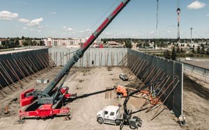 Ehingen, Juni 2020 - Das kanadische Bauunternehmen Eagle Builders hat sich auf die Konstruktion, Fertigung und Montage von Betonfertigteilen spezialisiert. Seine Niederlassung Quickline Crane ist für die Schwerlastanforderungen der Mutterfirma zuständig. Da die Projekte komplexer und immer höhere Tragkräfte gefordert werden, hat das Unternehmen einen Liebherr Mobilkran LTM 1250-5.1 beschafft. Der 250-Tonnen-Kran erfüllt genau die Anforderungen von Eagle Builders. Der LTM 1250-5.1 von Quickline Crane montiert Betonfertigteile mit Montagespitze und zweiter Hubwinde. Hier geht's zum vollständigen Beitrag-