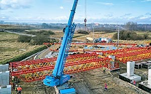 Neustettin (Polen), August 2018 - Für die anspruchsvolle Brückenkonstruktion in einem Feuchtgebiet nahe Neustettin planten PERI Ingenieure eine projektspezifische Traggerüst- und Schalungslösung. Rüstbinder und Schwerlasttürme auf Basis des Ingenieurbaukastens VARIOKIT sollen die hohen Lasten über große Spannweiten sicher in den Baugrund ableiten; darauf lagern VARIOKIT Gespärre mit der projektspezifischen Schalungslösung. Bauforum24 Artikel (19.02.2018): Bau des IN-Tower in Ingolstadt mit Peri Das konstruierte Schwerlastgerüst aus VRB Rüstbindern und VST Schwerlasttürmen leitete die hohen Lasten über große Spannweiten sicher in den Baugrund ab Die 160 m lange Straßenbrücke M‑8 bildet den Kern der insgesamt 12 km langen Umfahrung der Stadt Neustettin. Als Teil der Erweiterung der Schnellstraße S‑11 quert die Brücke mit zwei Fahrspuren je Fahrtrichtung das Feuchtgebiet rund um den Wilczy Kanal. Schwierige Baugrundbedingungen erforderten eine nicht alltägliche Traggerüstlösung, die sich aufgrund der großen Spannweiten und hohen Lasten nicht mit Standardsystemen umsetzen ließ. PERI lieferte für diese Anforderungen eine effiziente Lösung auf Basis des Ingenieurbaukastens VARIOKIT, die die Planung, die Vormontage und Lieferung als auch die Projektbegleitung umfasste. Große Spannweiten im System gelöst Zum Schalen des Überbaus aus Brückenbalken und Fahrbahnplatte kombinierten die Planer VARIOKIT Gespärre mit Systembauteilen der VARIO GT 24 Träger-Wandschalung Die Ausführungsplanung sah zwei voneinander unabhängige Brückenüberbauten mit vorgespanntem, 2‑stegigem Plattenbalken‑Querschnitt vor. Als beste Lösung erwies sich ein Traggerüst mit Feldspannweiten von 20,50 m bzw. 25,50 m, aufgestellt auf den Fundamenten der festen Brückenauflager und ohne Zwischenabstützungen in den Brückenfeldern. Nach Betrachtung verschiedener technischer Lösungen entschied sich das Bauunternehmen für die von PERI vorgeschlagene Variante mit VRB Rüstbindern auf Rüstturmscheiben. Diese Tragkonstruktion auf Basis des VARIOKIT Ingenieurbaukastens überzeugte die ausführende Eurovia Polska S.A. insbesondere aufgrund des geringen Gewichts, der Modularität der Rüstbindersegmente und der einfachen und schnellen Montage der Passbolzenverbindungen. Der VARIOKIT Ingenieurbaukasten ist für diese Anwendungen im Brückenbau prädestiniert – denn mit den vielfältig einsetzbaren Kernbauteilen, standardisierten Systembauteilen und einfachen Passbolzenverbindungen lassen sich schwere Traggerüsttürme und weitgespannten Fachwerkbinder für den Brückenbau systematisch errichten. Der VRB Rüstbinder beispielsweise wurde für Spannweiten bis 40 m und ein zulässiges Biegemoment von 3.000 kNm entwickelt. Schneller Baufortschritt dank Vormontage und schneller Umbauarbeit Die Ausführungsplanung sah zwei voneinander unabhängige Brückenüberbauten mit vorgespanntem, 2 stegigem Plattenbalken Querschnitt vor. Die beiden Überbauten wurden abwechselnd betoniert, wobei Schalungen und Traggerüste jeweils von einem Brückenstrang auf den anderen versetzt wurden Zum Schalen des Überbaus aus Brückenbalken und angrenzender Fahrbahnplatte kombinierten die Planer VARIOKIT Gespärre mit Bauteilen der VARIO GT 24 Träger‑Wandschalung. Die jeweiligen Abschnitte der beiden parallelen Überbauten wurden abwechselnd betoniert, wobei Schalungen und Traggerüste jeweils von einem Brückenstrang auf den anderen versetzt wurden. Da es auf der Baustelle an geeignetem, befestigtem Montageplatz mangelte, sorgte PERI für die termingerechte Vormontage der Rüstbinder im PERI Werk in Segmenten mit 12,50 m Länge. Anschließend wurden mehrere Materialpakete – bestehend aus einem ausgesteiften Raumgerüst mit Rüstbinderscheibe – just‑in‑time auf die Baustelle geliefert. Dort verband das Baustellenteam die Einheiten zu Binderpaaren mit einer Gesamtlänge von 20,50 m bzw. 25,50 m und montierte diese auf den VST Rüstturmscheiben. Auf diese Weise konnte die Rüstbindermontage parallel zum Aufbau der Traggerüsttürme erfolgen. Das reduzierte die notwendige Vorhaltemenge auf der Baustelle, sparte folglich Material- und Lagerkosten sowie Zeit. Zur Beschleunigung der Endmontage lieferte PERI auch die Schalungseinheiten vormontiert auf die Baustelle. Die PERI Schalungsmontage sorgte hierbei für den maßgenauen Abbund und eine termingerechte Disposition. Die im PERI Werk vormontierten Einheiten wurden vor Ort zu Binderpaaren mit einer Gesamtlänge von 20,50 m bzw. 25,50 m verbunden. Die VRB Rüstbinder wurden dann am Stück per Kran eingehoben und auf den VST Rüstturmscheiben montiert Im Querschnitt bestand die Traggerüstlösung aus sechs VRB Rüstbinderebenen. Jeweils drei Binder werden miteinander verbunden und ausgesteift, um die Überbauschalung eines Brückenbalkens zu tragen. Der VRB Rüstbinder setzt sich immer aus verschiedenen last- und längenoptimierten Rahmentypen zusammen, die durch entsprechende Kombinationen stufenlos jede Spannweite ermöglichen. Für die Brücke bei Neustettin wurden die Module der jeweiligen Aufbauvarianten so gewählt, dass sich jegliche Anpassung an die unterschiedlichen Längen der mittleren Brückenfelder und der Randfelder schnell und problemlos vollziehen ließ. In die Lösung integrierte PERI UP Treppen sorgten stets für den sicheren Zugang zum Überbau. Zur Beschleunigung der Endmontage lieferte PERI auch vormontierte Schalungseinheiten. Die PERI Schalungsmontage sorgte hierbei für den maßgenauen Abbund und eine termingerechte Disposition PERI Ingenieure unterstützen das Baustellenteam während des gesamten Bauablaufs mit termingerechter Logistik und baubegleitender Projektunterstützung dafür, dass sämtliche Anforderungen erfüllt und der Bauzeitenplan eingehalten werden konnten Weitere Informationen: PERI | © Fotos: PERI GmbH